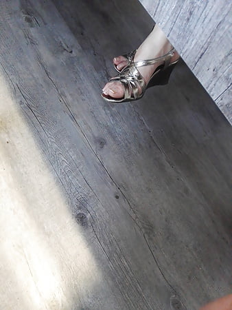 Porn image Candid mature feet under table