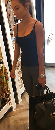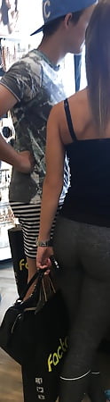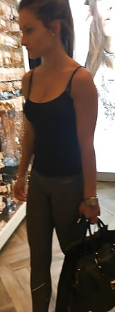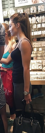 Big tits, tight body, gym clothes, mall twins