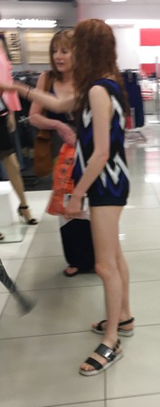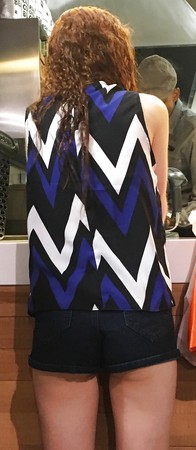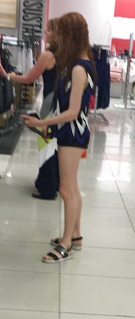 XXX Tiny redhead mall teen in tiny shorts with a tiny ass