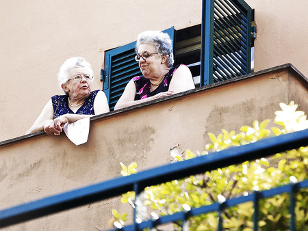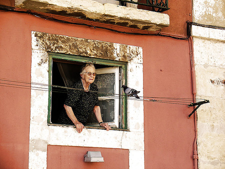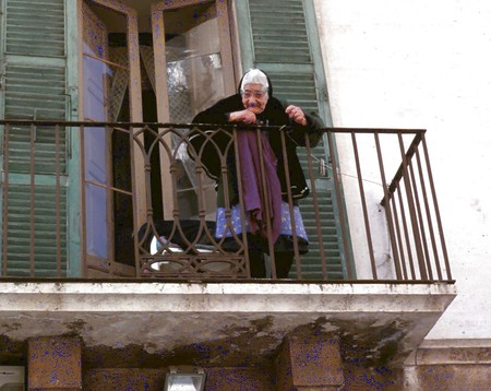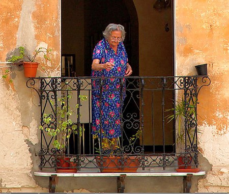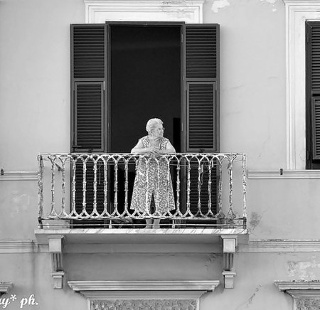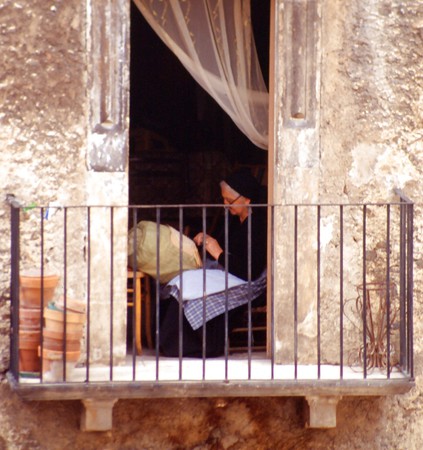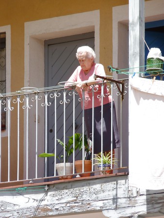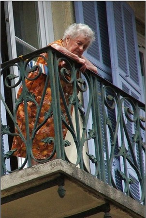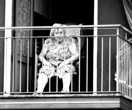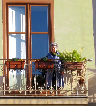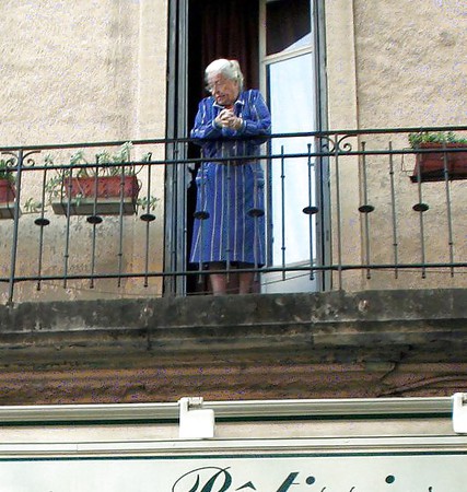 Porn Pics Grannies on the balcony or in the window.